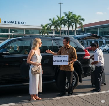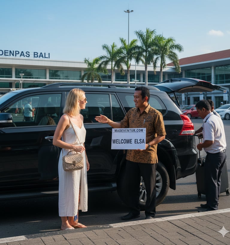 start and end your Bali vacation stress-free. Madeventure.com provides prompt, comfortable, and reliable private airport transfer services (to and from Ngurah Rai International Airport, DPS). Our professional drivers will ensure a smooth, safe, and welcoming journey directly to your accommodation, allowing you to relax from the moment you land.